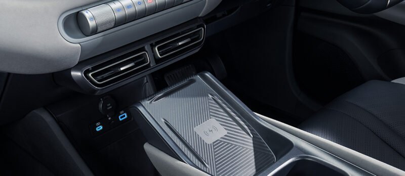 Nikmati kemudahan pengisian daya perangkat seluler tanpa kabel, menjaga kabin tetap rapi dan tetap terhubung sepanjang perjalanan.