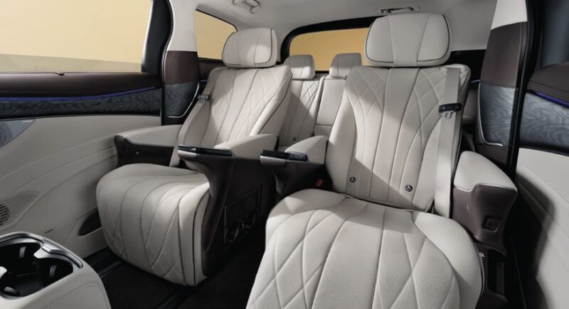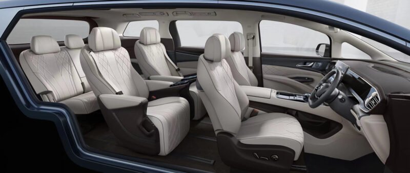 The second-row seats utilise a 1080mm-long electric slide rail, creating a spacious interior for all passengers to enjoy the luxury of DENZA D9.